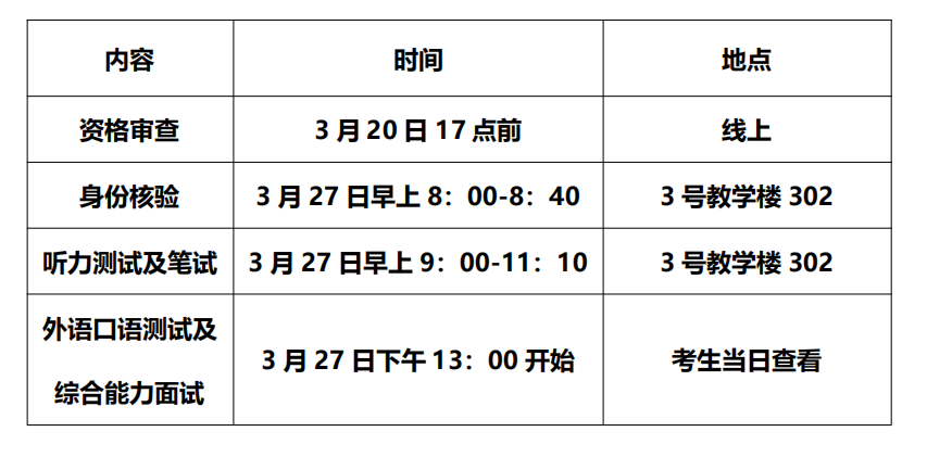 (4)综合考核专家从事先准备的英语题库中抽取试题用外语进行提问,考生用外语回答,测试考生的外语听力和口语水平。